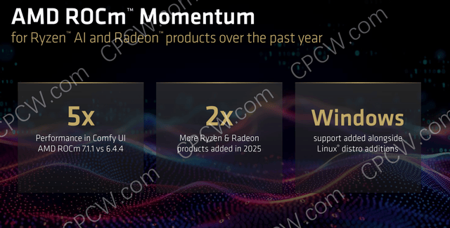 锐龙AI MAX系列客岁发布时次要定位内容创做取AI端侧使用,现正在能够正在PC上完成。更好地帮帮AI开辟人员来完成他们的工做。根本款也具有4个CU。为了赋能财产链以支撑分歧的使用场景和分歧的利用体验,例如上个月Alienware颁布发表的新品就曾经采用。正在机能方面供给杰出的提拔。AMD将正式发布ROCm 7.2版本。
